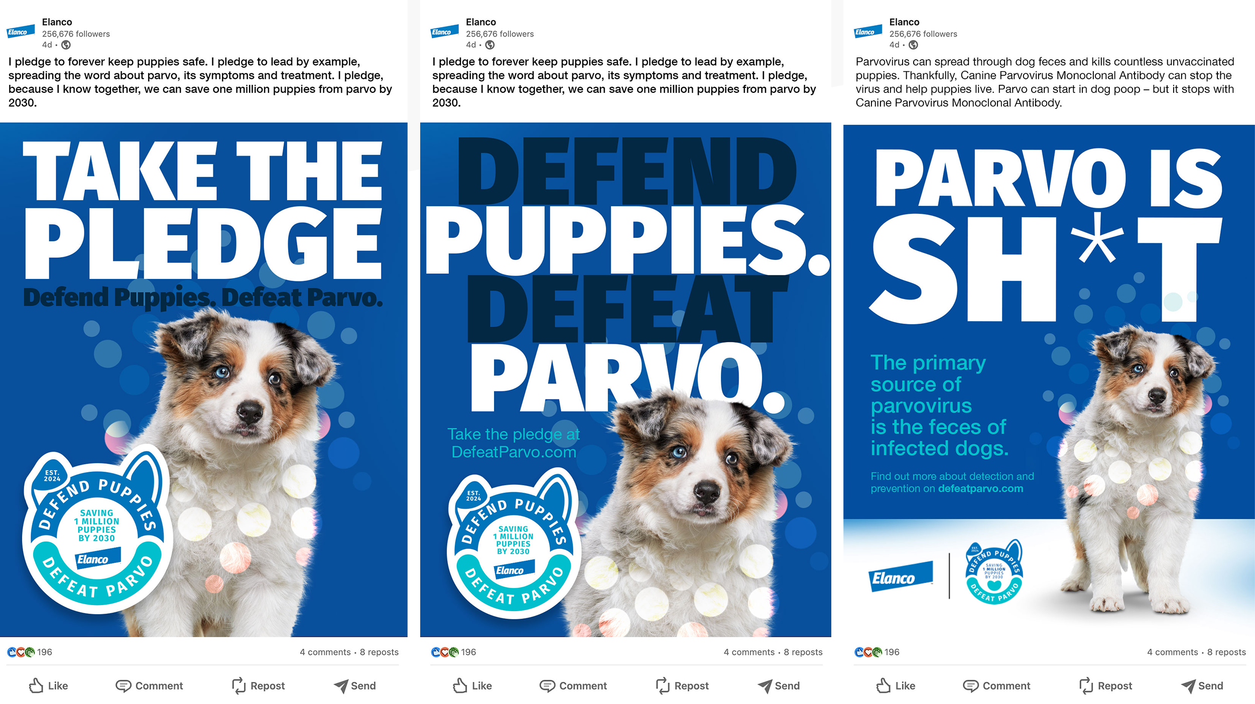 Elanco launched its first-to-market treatment for canine parvovirus, a deadly disease that affects puppies. We developed and executed the Parvo is Poop campaign to educate dog owners about the disease and spread awareness among veterinarians about the new drug, emphasizing that parvo spreads through contaminated feces. In just three months, the campaign boosted sales by 39%, and helped save 12K+ puppies' lives.